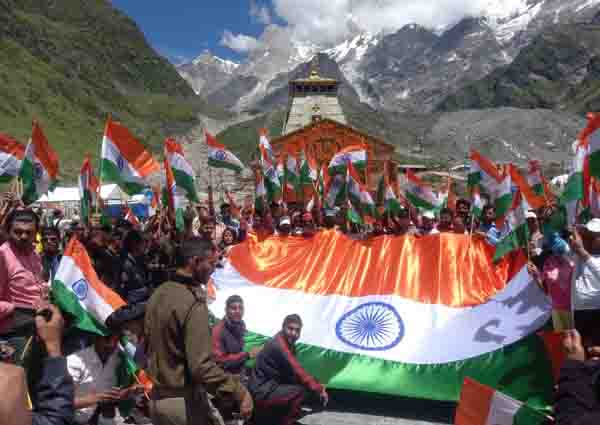 आजादी का अमृत महोत्सव कार्यक्रम की श्रृंखला में आज बाबा केदारनाथ धाम में जिला प्रशासन, पुलिस प्रशासन व मन्दिर समिति के संयुक्त तत्वाधान में कार्यक्रम आयोजित कर केदारनाथ धाम में दर्शन करने आ रहे तीर्थ यात्रियों एवं केदारनाथ धाम मे यात्रा व्यवस्था में तैनात अधिकारियों व कर्मचारियों तीर्थ पुरोहितों व्यापारियों द्बारा मानव श्रृंखला बनाकर कर तिरंगा रैली का आयोजन किया गया। जिसका शुभारंभ केदारनाथ मंदिर परिसर से किया गया। तिरंगा रैली कार्यक्रम का मुख्य उद्देश्य हर घर तिरंगा फहराये जाने के लिए जनपद वासियों सहित प्रदेश वासियों को जागरूकता संदेश दिया गया जिससे सभी लोग इस राष्ट्रीय पर्व में शामिल होकर अपने घरों में तिरंगा अवश्य फहराये।