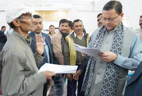 हिम सन्देश, 11 फ़रवरी 2023, शनिवार, देहरादून। मुख्यमंत्री पुष्कर सिंह धामी ने शनिवार को मुख्यमंत्री आवास स्थित मुख्य सेवक सदन में आयोजित जनता मिलन कार्यक्रम में बड़ी संख्या में आए लोगों की शिकायतों और समस्याओं को सुना। मुख्यमंत्री ने जन समस्याओं के त्वरित समाधान के अधिकारियों को निर्देश दिये। उन्होंने निर्देश दिये कि जो भी जन समस्याएं आ रही हैं, उनका समयबद्धता से निस्तारण किया जाए।