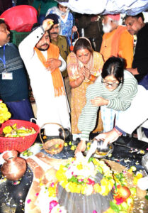हिम सन्देश, 18 फरवरी 2023, शनिवार, देहरादून। आज महाशिवरात्रि के अवसर पर कैबिनेट मंत्री रेखा आर्या अपनी पुत्री वैष्णवी के साथ देहरादून स्थित टपकेश्वर मंदिर पहुँची, जहाँ उन्होंने पौराणिक शिव मंदिर टपकेश्वर में भगवान शिव का जलाभिषेक किया।