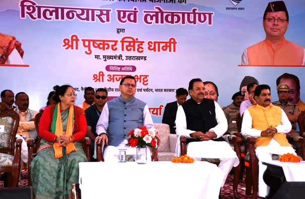 मुख्यमंत्री धामी ने अपने सम्बोधन में कहा कि सरकार द्वारा जितनी भी योजनाओं का शिलान्यास किया गया है जल्द ही इन योजनायों को धरातल पर उतरा जायेगा। उन्होंने कहा प्रधानमंत्री श्री नरेन्द्र मोदी के नेतृत्व में उत्तराखण्ड को विकास हेतु 9 वर्ष में 1.50 लाख करोड़ रूपये की धनराशि की योजनाओं पर कार्य किया गया। उन्होंने कहा हमारी सरकार का प्रयास है रोजगार के अवसर पैदा कर पलायन को रोकने के विजन पर कार्य कर रही है। उन्होंने कहा सरकार द्वारा 813 करोड़ रूपये की धनराशि उद्यान, बागवानी हेतु किसानों को आत्मनिर्भर बनाने हेतु दिया गया है, आने वाले वर्ष में उत्तराखण्ड मे 50 हजार पॉलीहाउस बनाने का लक्ष्य निर्धारित किया गया है। उन्होंने कहा कि प्रदेश का युवा, मातृशक्ति व किसान को आत्मनिर्भर बनाने के लिए विशेष प्रयास किये जा रहे हैं।