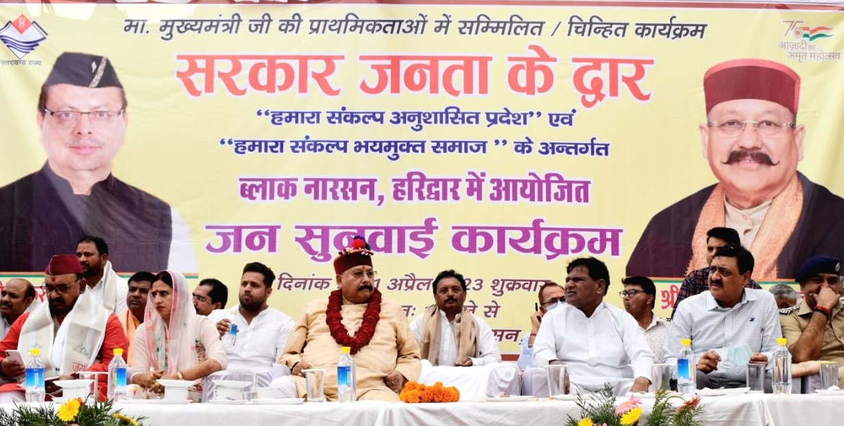 कैबिनेट मंत्री सतपाल महाराज ने विकासात्मक कार्यों का लोकार्पण करने के पश्चात ‘‘सरकार जनता के द्वार” ‘‘हमारा संकल्प अनुशासित प्रदेश” एवं ‘‘भयमुक्त समाज” कार्यक्रम के अंतर्गत आयोजित जन सुनवाई कार्यक्रम में प्रधानमंत्री नरेन्द्र मोदी एवं मुख्यमंत्री पुष्कर सिंह धामी का उल्लेख करते हुये कहा कि उनके मार्गदर्शन में हम “विकल्प रहित संकल्प” के साथ उत्तराखंड को उत्कृष्ट प्रदेश बनाने की ओर अग्रसर हैं तथा विकास के मामले में हमने एक नई मिसाल पेश की है। उन्होने महापुरूषों का उल्लेख करते हुये कहा कि हमारी सरकार विशिष्टजनों द्वारा दिये गये योगदान को हमेशा याद रखती है। उसी के तहत हमने मंगलौर-देबबंद मार्ग का नाम चौधरी चरण सिंह के नाम से, मंगलौर-झबरेड़ा-सहारनपुर मोटर मार्ग का नाम राजा विजय सिंह के नाम से, आसफनगर-इकबालपुर मोटर मार्ग का नाम डॉ० एपीजे अब्दुल कलाम के नाम से, पुहाना झबरेड़ा-गुरुकुल नारसन मोटर मार्ग का नाम डॉ० भीम राव अम्बेडकर के नाम से रखने के साथ ही आजादनगर-पनियाल मार्ग का नाम पंडित दीन दयाल उपाध्याय के नाम से रखा है।